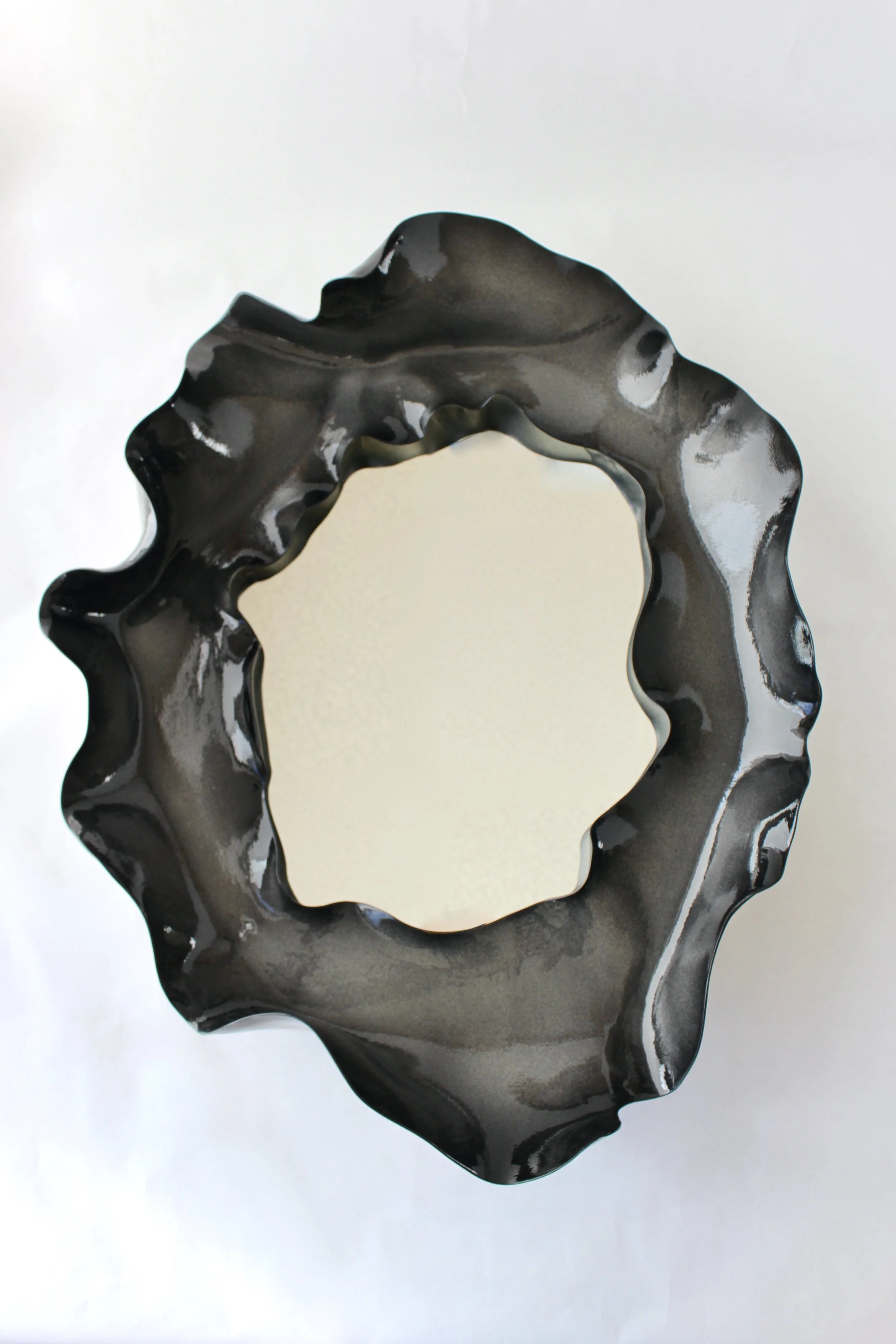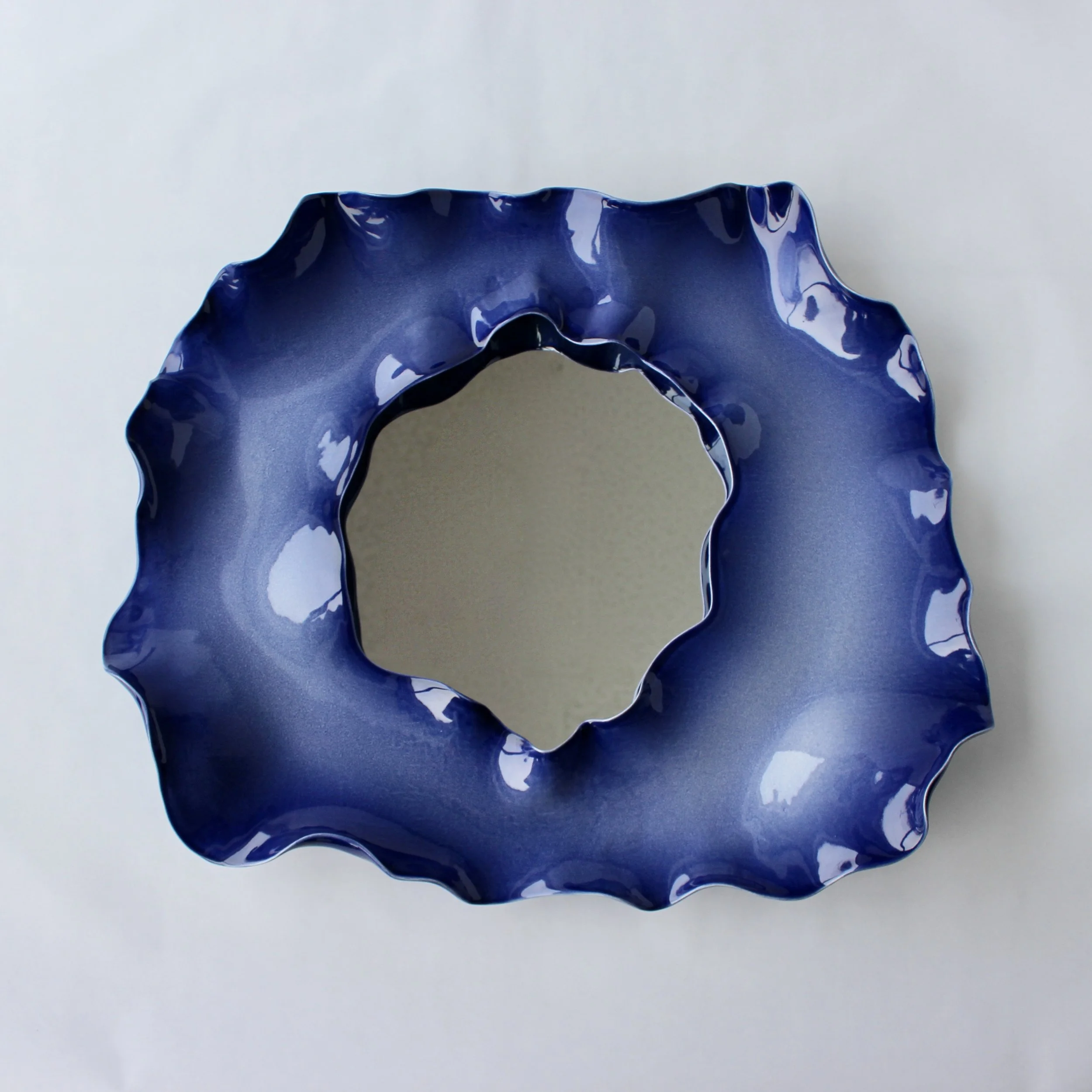 An ethereal essence is captured in each handbuilt ceramic mirror frame, which take inspiration from natural elements. Fluid undulating surfaces and delicate petal-like edges are highlighted with soft gradient colours that emulate florals fluttering in the breeze and shimmering pools of water.